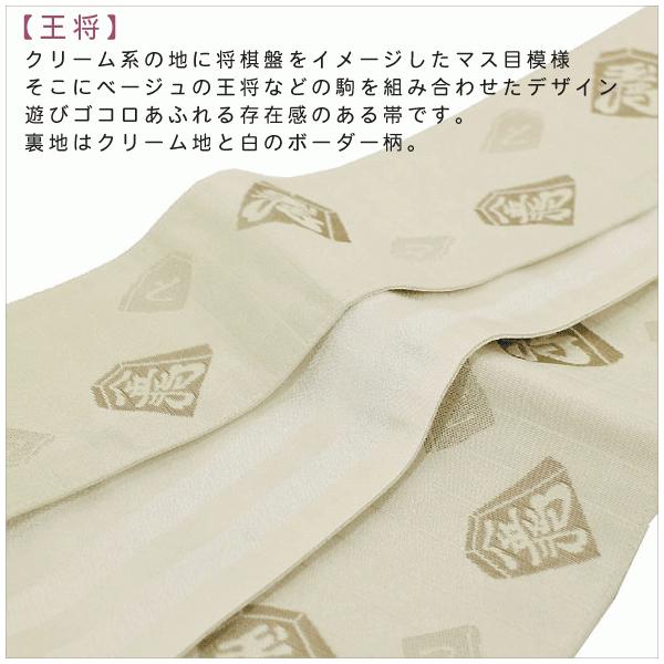 桐生織角帯【王将・クリーム地】仕立上・メンズ・粋・ポリエステル・メンズ帯・男帯・浴衣帯・ゆかた帯・洒落帯