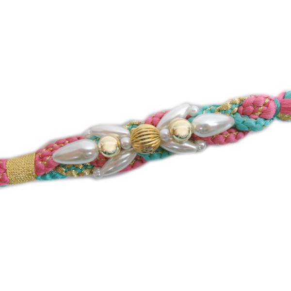 (素材):帯締め部分絹100%・パールビーズ部分プラスチック/中国製