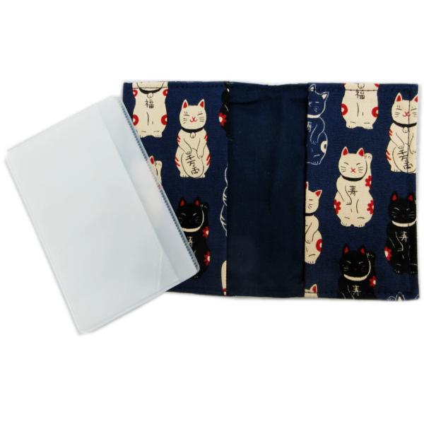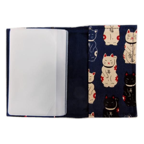 カード 保険証 名刺 免許証 定期 入れ ケース 6P 福あつめ招き猫 濃紺 日本製 女性用 レディース メンズ 男性用 子供用 キッズ