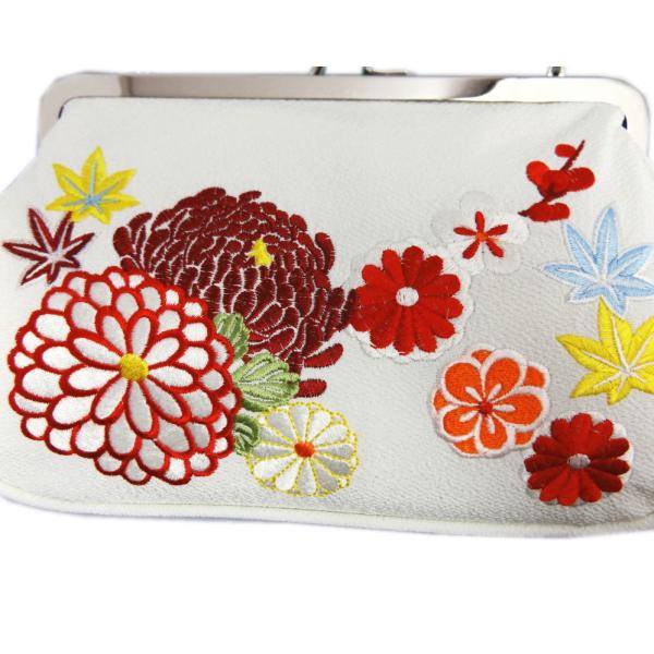 バッグ 桂由美 がま口 手提げ 白色濃青地菊梅楓刺繍 振袖 成人式 卒業式 袴 着物 きもの 単品 白色 女性用