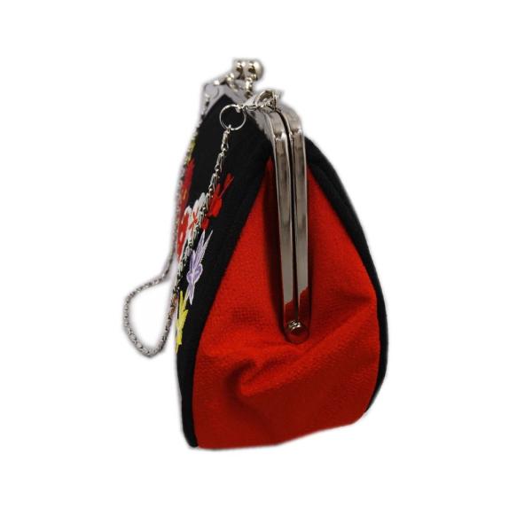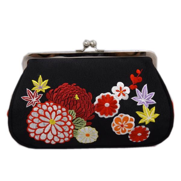 バッグ 桂由美 がま口 手提げ クラッチ 黒赤色地菊梅楓刺繍 振袖 成人式 卒業式 袴 着物 きもの 単品 黒色 女性用