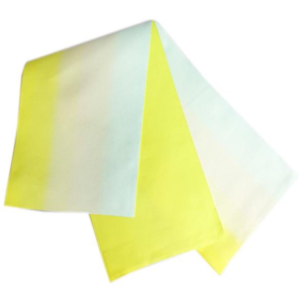 半巾帯 半幅帯 グラデーション 三段ぼかしライン 明黄色薄グレー薄水色 日本製 リバーシブル 浴衣 ゆかた 卒業式 袴下帯