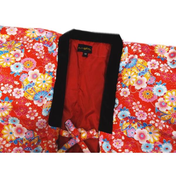 半天 袢纏 はんてん 子供用 キッズ 女の子 綿入 赤色地鞠古典小花 110 120 130 150