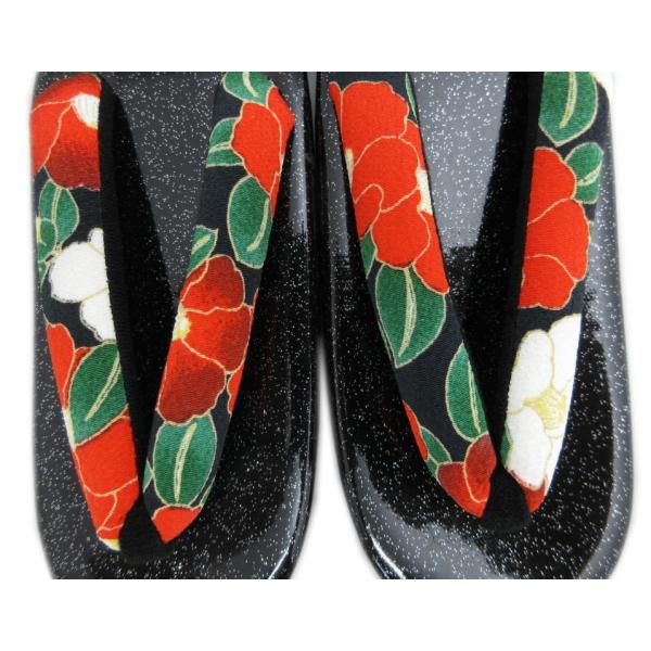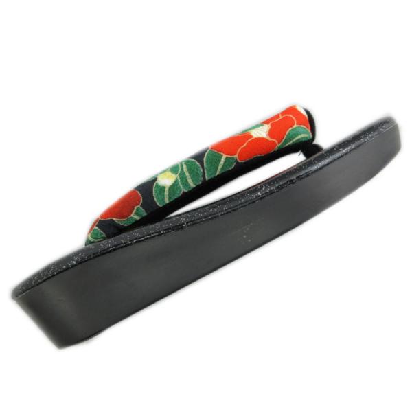 草履 ぞうり 子供用 キッズ 女の子 黒ラメ台黒色地椿 18cm 20cm 22cm 七五三 着物 単品