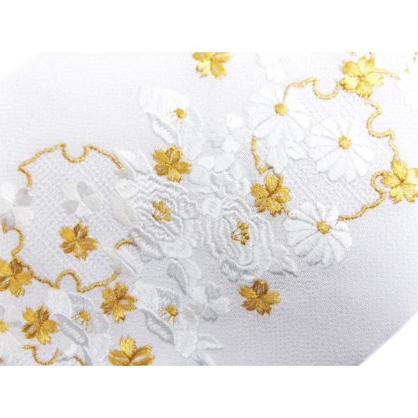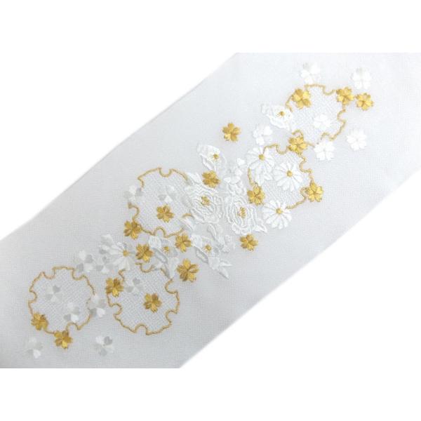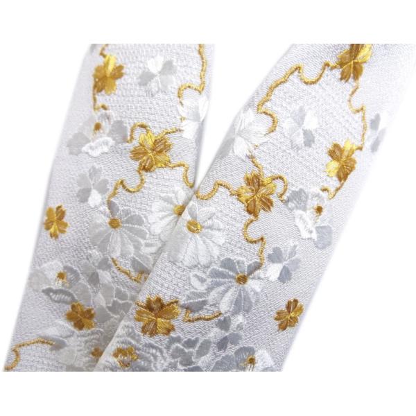 半衿 半襟 刺繍 白色地 金糸入り 雪輪小桜古典花 振袖 成人式 卒業 袴 着物 女性用