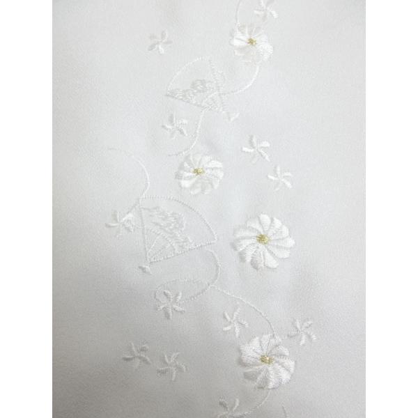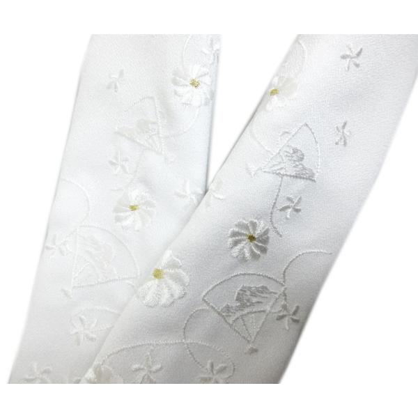 半衿 半襟 刺繍 白色地 金糸入り 扇子小花 振袖 成人式 卒業式 袴 着物 洗える