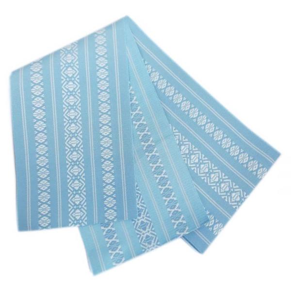 【訳有り 少難あり】 半巾帯 半幅帯 長尺 ロング 献上柄 水色 日本製 浴衣 ゆかた 夏用 夏物 単衣 着物 女性用 ふくよか