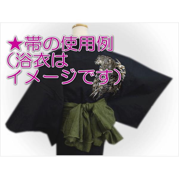 兵児帯 へこ帯 メンズ 男性 ふわクシュ シワ 渋緑色 浴衣 着物 男物 紳士用 粋