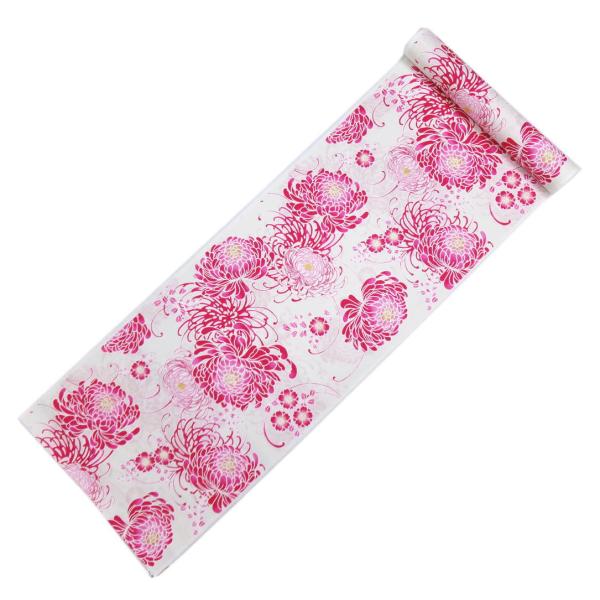 浴衣 ゆかた 反物 未仕立て 女性用 綿 日本製 オフホワイト白色地赤ピンク乱菊八重桜 レディース 教材 裁縫 和裁 練習用