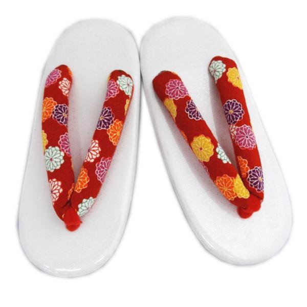 草履 ぞうり 子供用 キッズ 女の子 白ラメ台赤色地小菊花 18cm 20cm 22cm 七五三 着物 単品