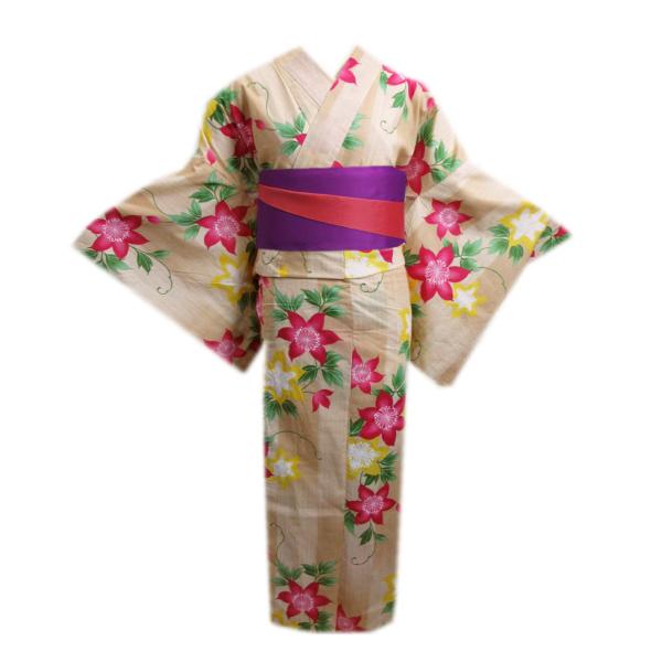 浴衣 ふくよかさん 3L 4L 5L 半巾帯 長尺 リバーシブル 2点セット 薄茶色地可憐花 女性用 大きいサイズ ゆかた