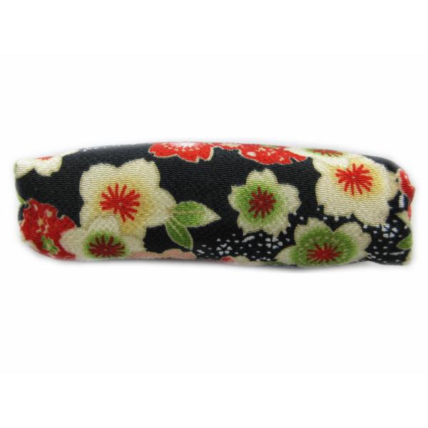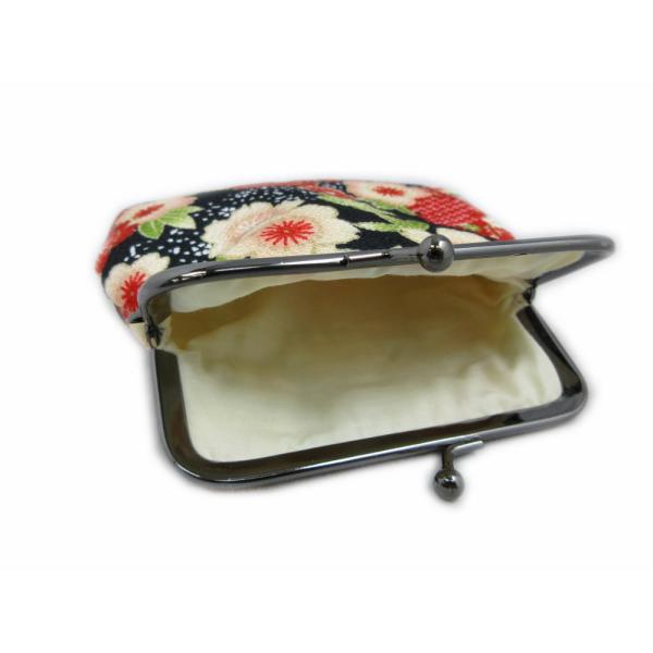 がま口 財布 サイフ 小銭入れ 和柄 大ぶり 角丸型 ちりめん 黒色地桜雪輪 女性用