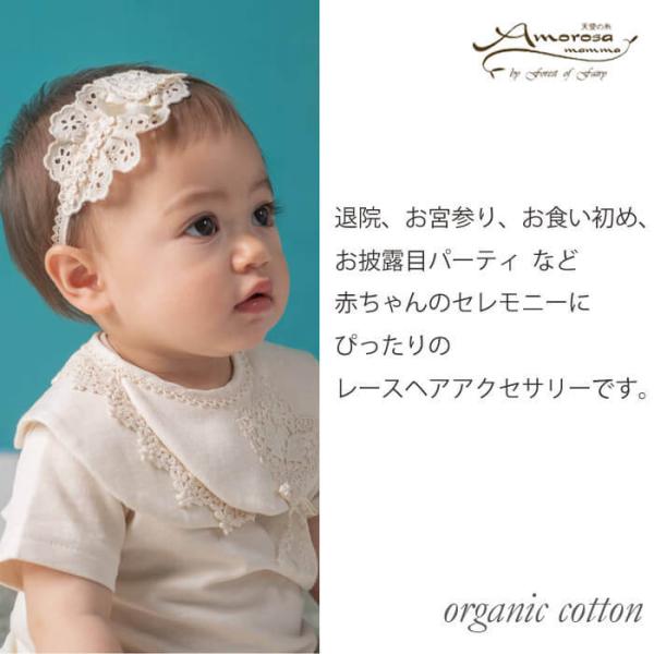 ヘアバンド ベビー ハート レース リボン CAM008 ヘアアクセ ヘアアクセサリー カチューシャ オーガニックコットン アモローサマンマ 日本製 オーガニック コッ