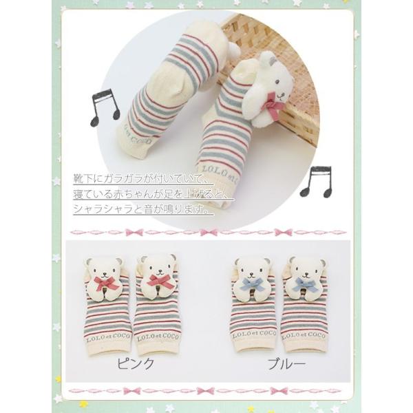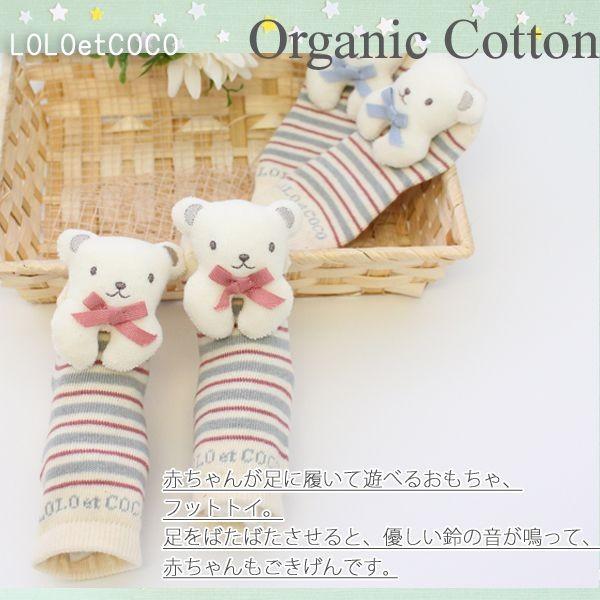 ベビー おもちゃ 0歳 出産祝い オーガニックコットン ガラガラ付き靴下 くま フットトイ フットトーイ LOLO et COCO 日本製 クリスマス クリスマスプレゼント