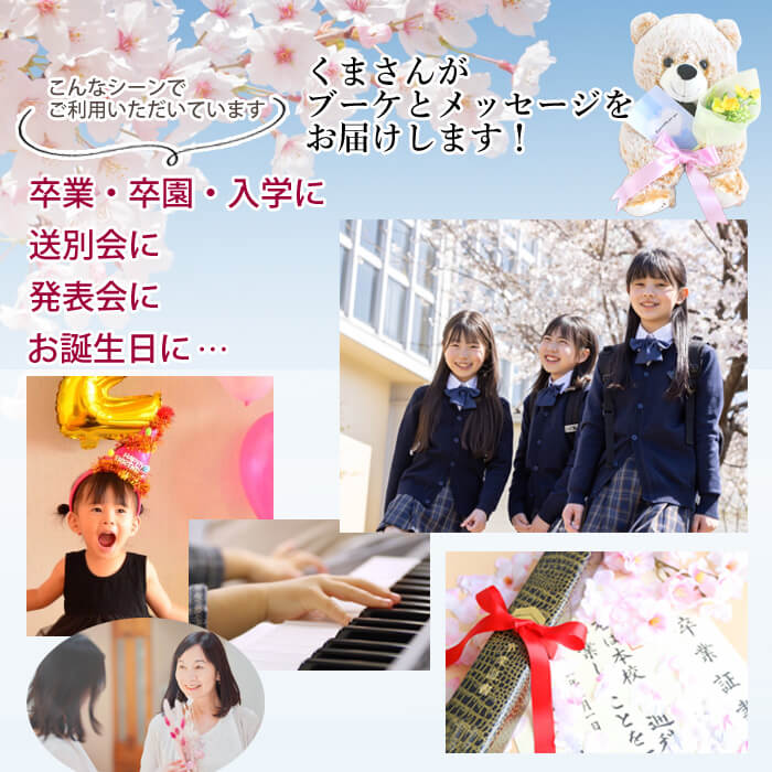 ● 使用品 :くまぬいぐるみ、ミニブーケ(造花)、メッセージカード