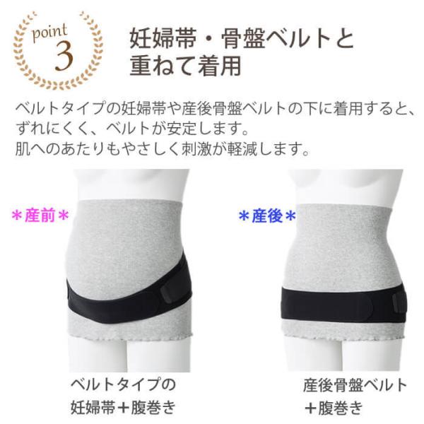 ●ベルトタイプの妊婦帯・産後骨盤ベルトと重ねて着用すると、腰への負担が軽減され腰痛対策に。