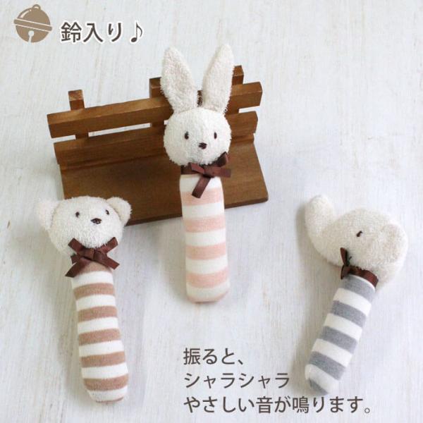 ●おすすめ: ラッピング無料 オーガニックコットン オーガニック コットン 綿 赤ちゃん おもちゃ 鈴入り がらがら ガラガラ ラトル にぎにぎ スティックガラガラ 男の子 女の子 男 女 新生児 3ヶ月 3カ月 3か月 6ケ月 6カ月 6か月 プレゼント 出産祝い ギフト お祝い 御祝 かわいい おしゃれ 日本製 国産 動物 アニマル うさぎ ぞう くま わたぼうし