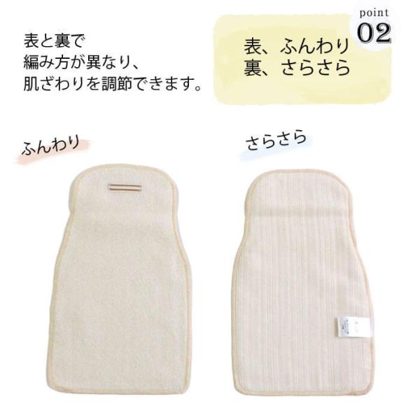 表パイル、裏ガーゼ素材で、やわらかな肌触りが特徴です。