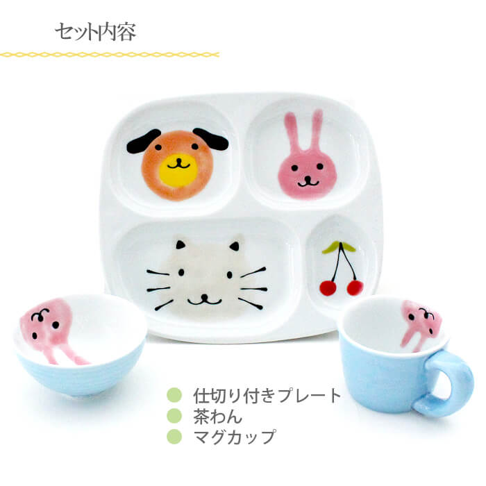 食洗器、電子レンジOK。子供用の波佐見焼セット。仕切りプレート