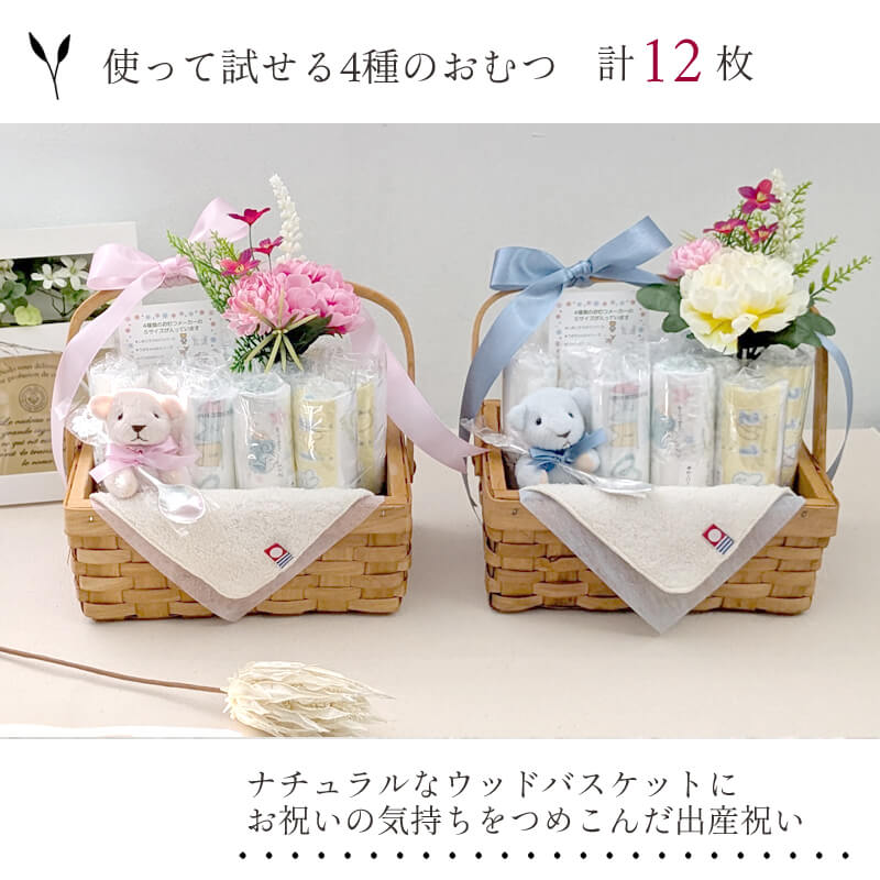 おむつケーキ おむつバスケット 出産祝い オムツケーキ セット 男の子 女の子 男 女 かわいい おしゃれ 4種類のおむつが試せる ウッド プレゼント 出産祝