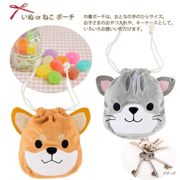 巾着ポーチ(いぬ または ねこ)、