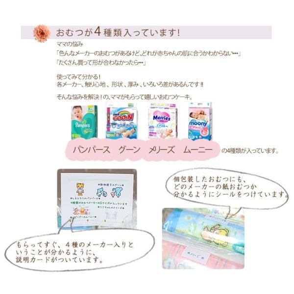 おむつケーキ 出産祝い オムツケーキ セット 男の子 女の子 男 女 4種類のおむつ入り いぬ ねこ パンパース グーン メリーズ ムーニー わたぼうし