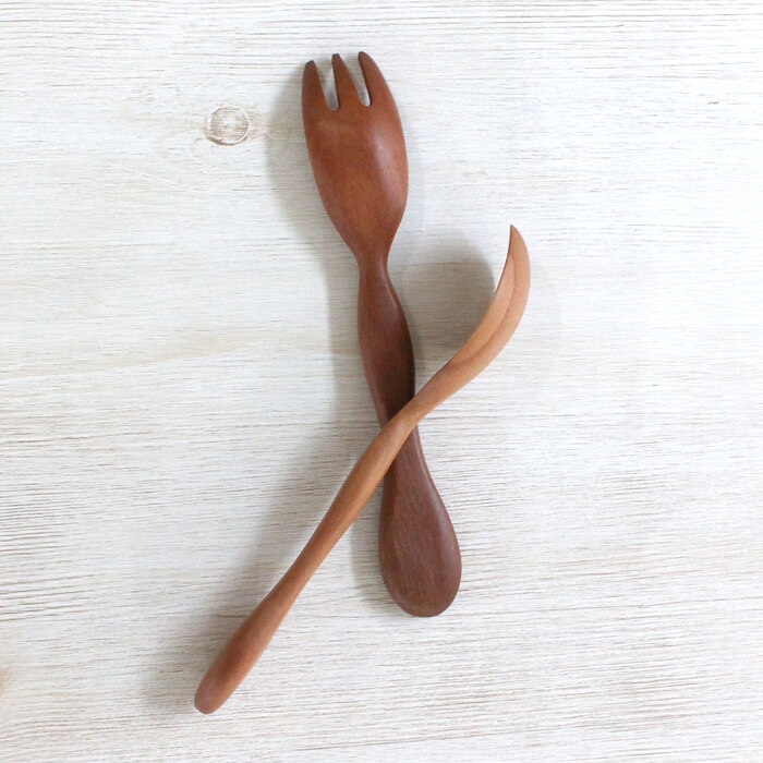 木製 カトラリー もこもこ スプーン フォーク (大) 木 大人 子供 木のスプーン 籐芸