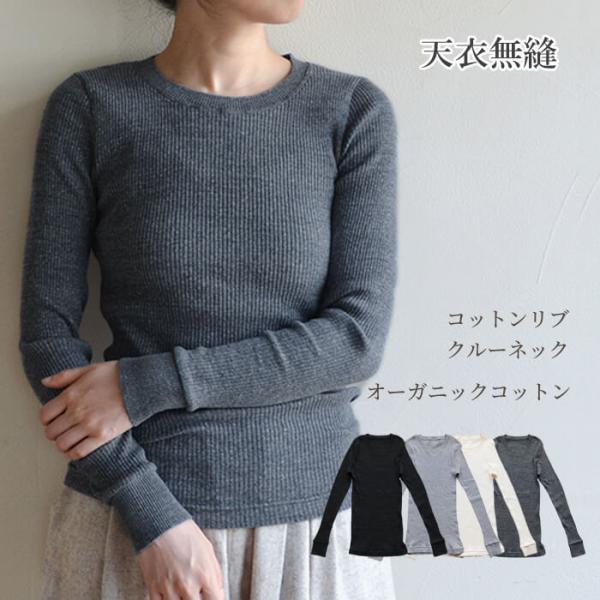 天衣無縫 コットンリブ クルーネック カットソー 長袖 オーガニックコットン レディース インナー 綿 薄手 セーター 重ね着 春 秋 冬 日本製 ギフト プレゼント