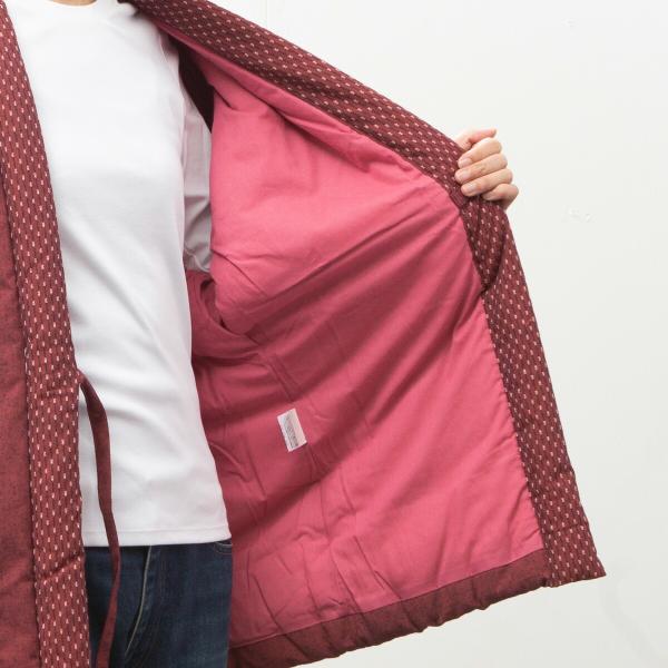 日本製 半纏 レディース 女性用 久留米織 綿入れ 中綿 はんてん 赤 紫 どてら 袢纏 丹前 おしゃれ 暖か 温か 綿100% 敬老の日 プレゼント