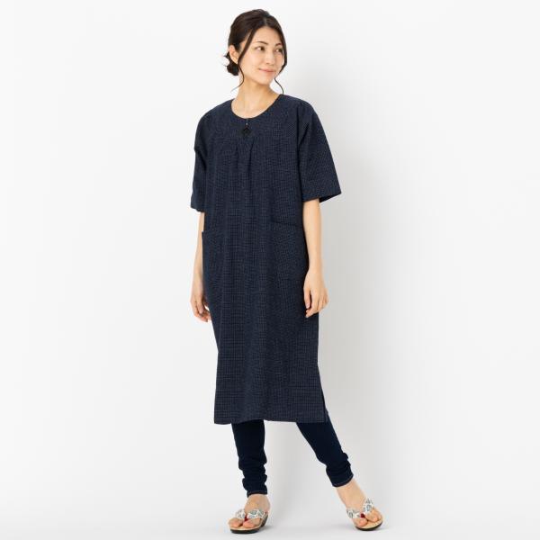 日本製 久留米ちぢみ織 ワイドチュニック レディース 綿100% 涼しい おしゃれ ナチュラル チュニック 大人 かわいい 半袖 チェック 母の日 プレゼント 贈り物