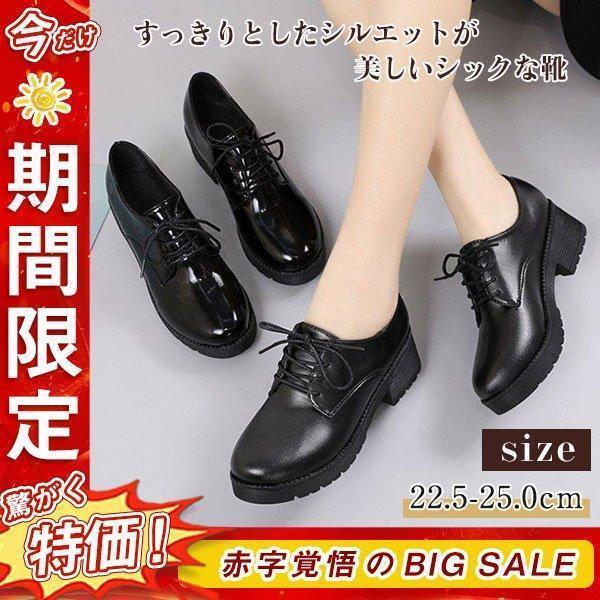 ドレスシューズ レースアップ レディース 靴 ローヒール レザー調 履きやすい カジュアル シンプル