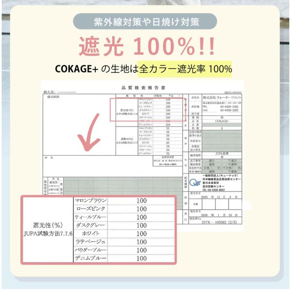 特殊な三層ラミネート加工は、遮光・UVカット・遮熱性に優れるだけでなく、耐水圧でも実力を発揮
