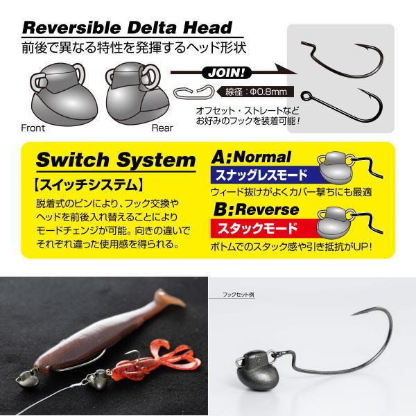 デルタ形状のヘッドはスライド式のピンを抜いて反転させることで、前後どちらでも使用可能。