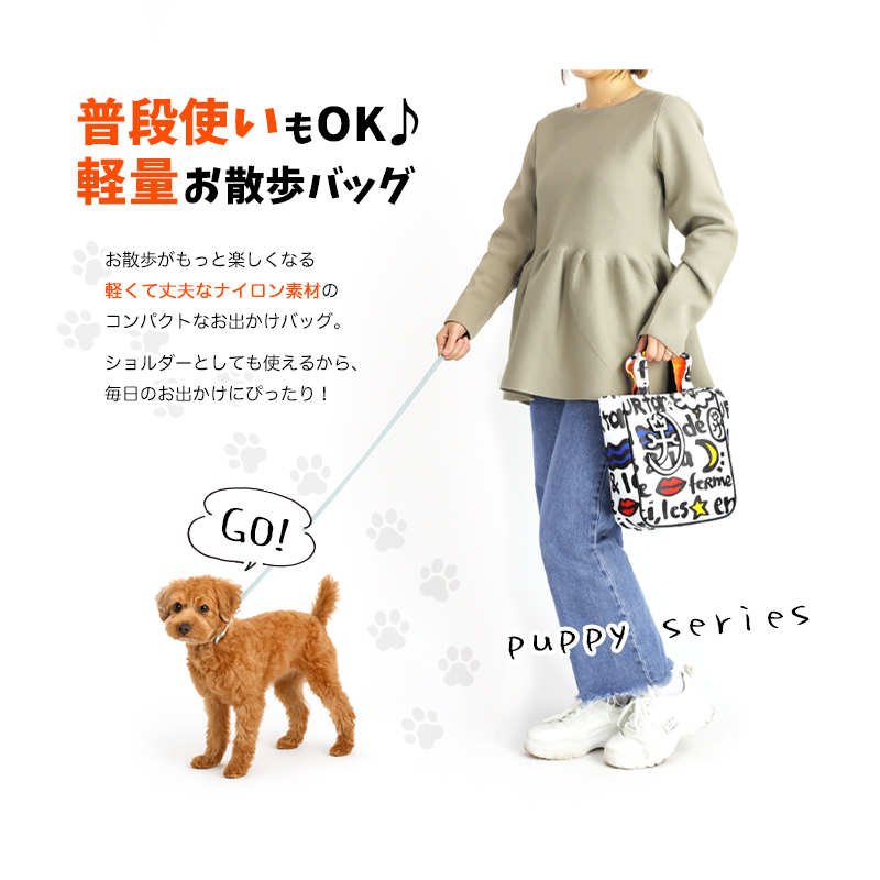 散歩や病院、トリミングサロンの移動など、さっとお出かけしたい場面に大活躍のお散歩バッグです☆
