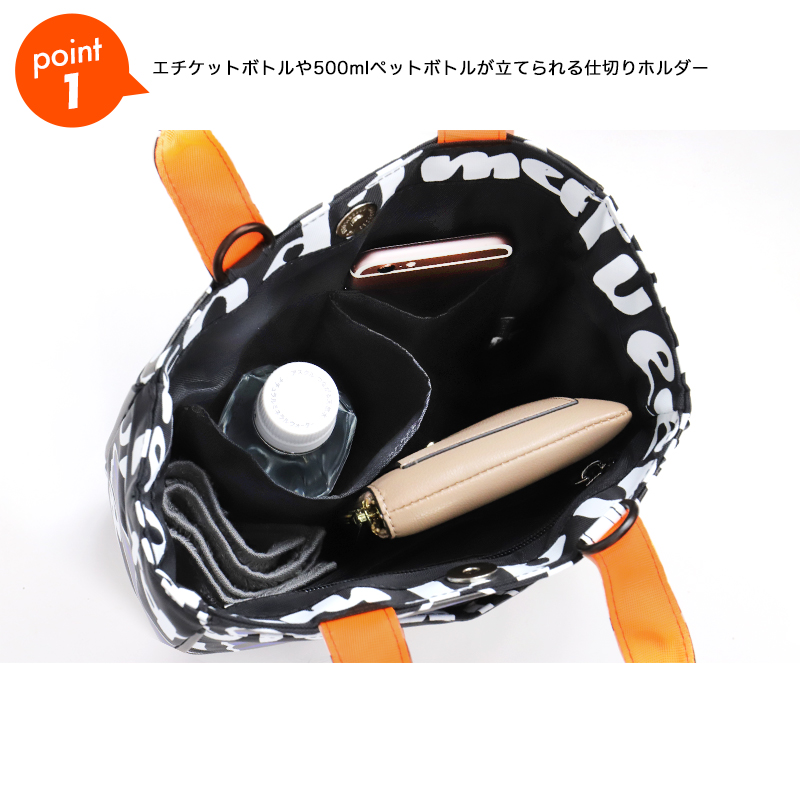 ファスナー付きポケットやオープンポケットを備え、小物も整理してすっきり収納できます。