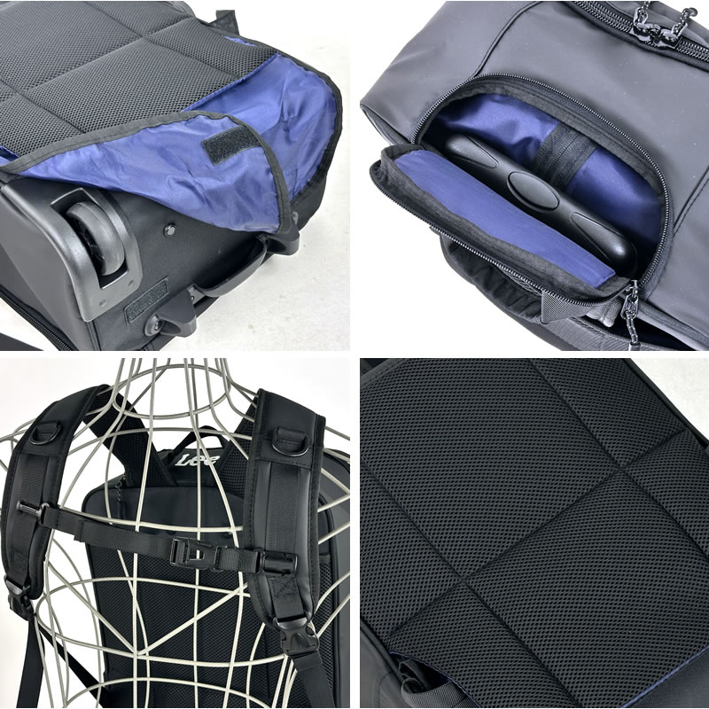 キャリーとリュックの2WAY仕様で用途に応じて使い分け可能。