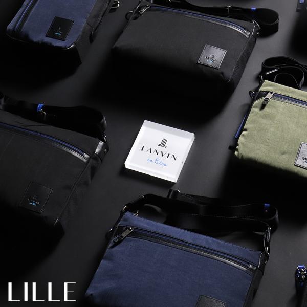 LANVIN en Bleu ランバンオンブルー LILLE リール ショルダーバッグ 斜め掛けバッグ B5 ナイロン 牛革 軽量 撥水 530112 メンズ レディース