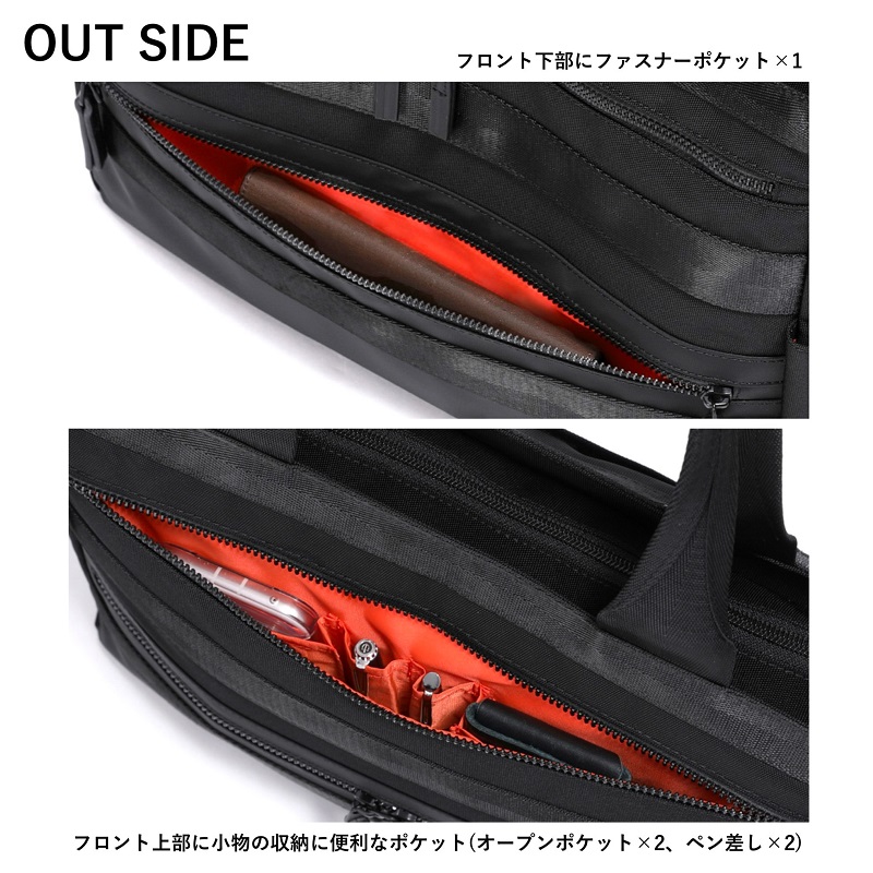 前ポケット:ファスナーポケット×2(内1つオープンポケット×2、ペン差し×2)