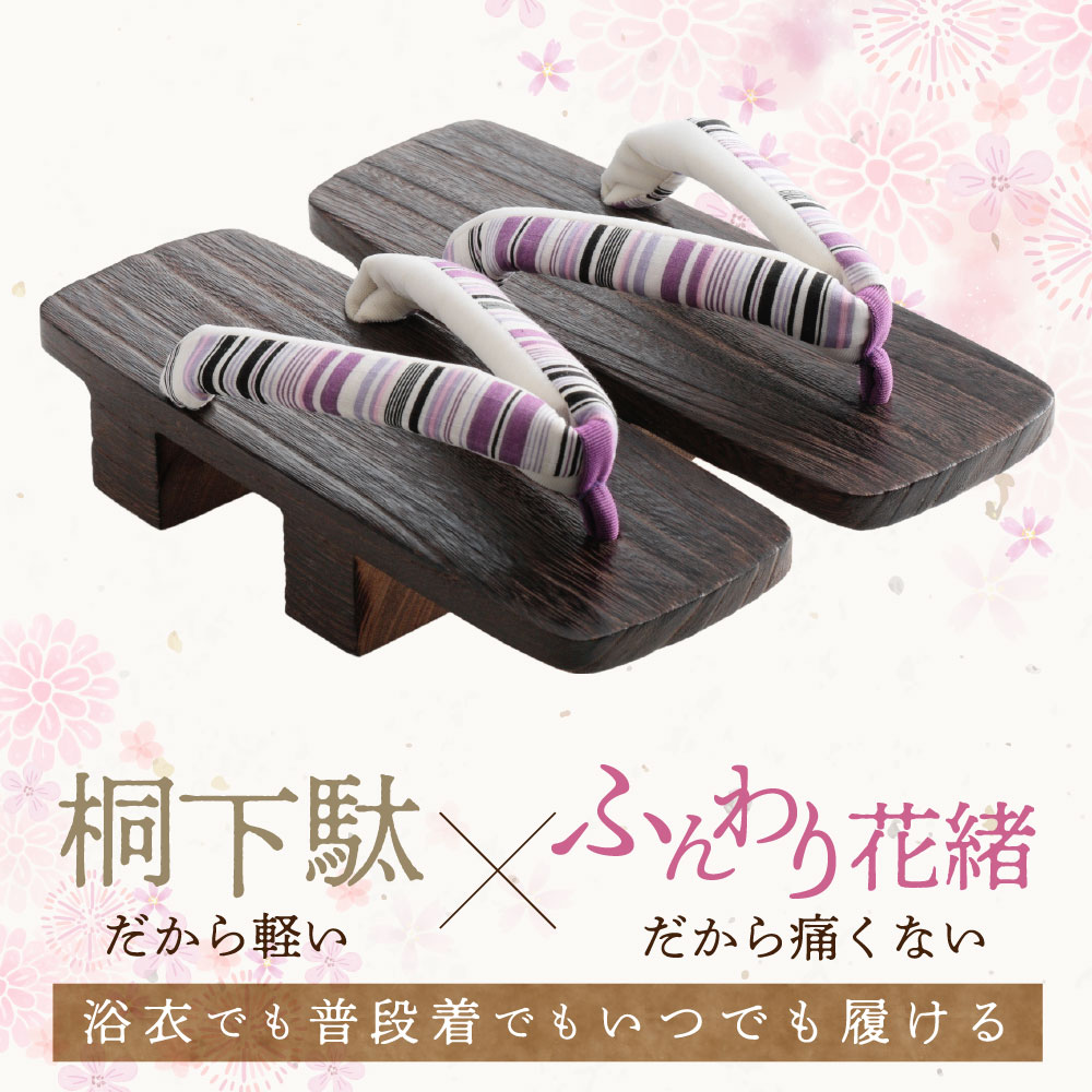 watomi 下駄 レディース 二枚歯 焼下駄 桐下駄 浴衣 おしゃれ 痛くない 履きやすい 角 桐女二枚歯下駄 焼磨 柄花緒