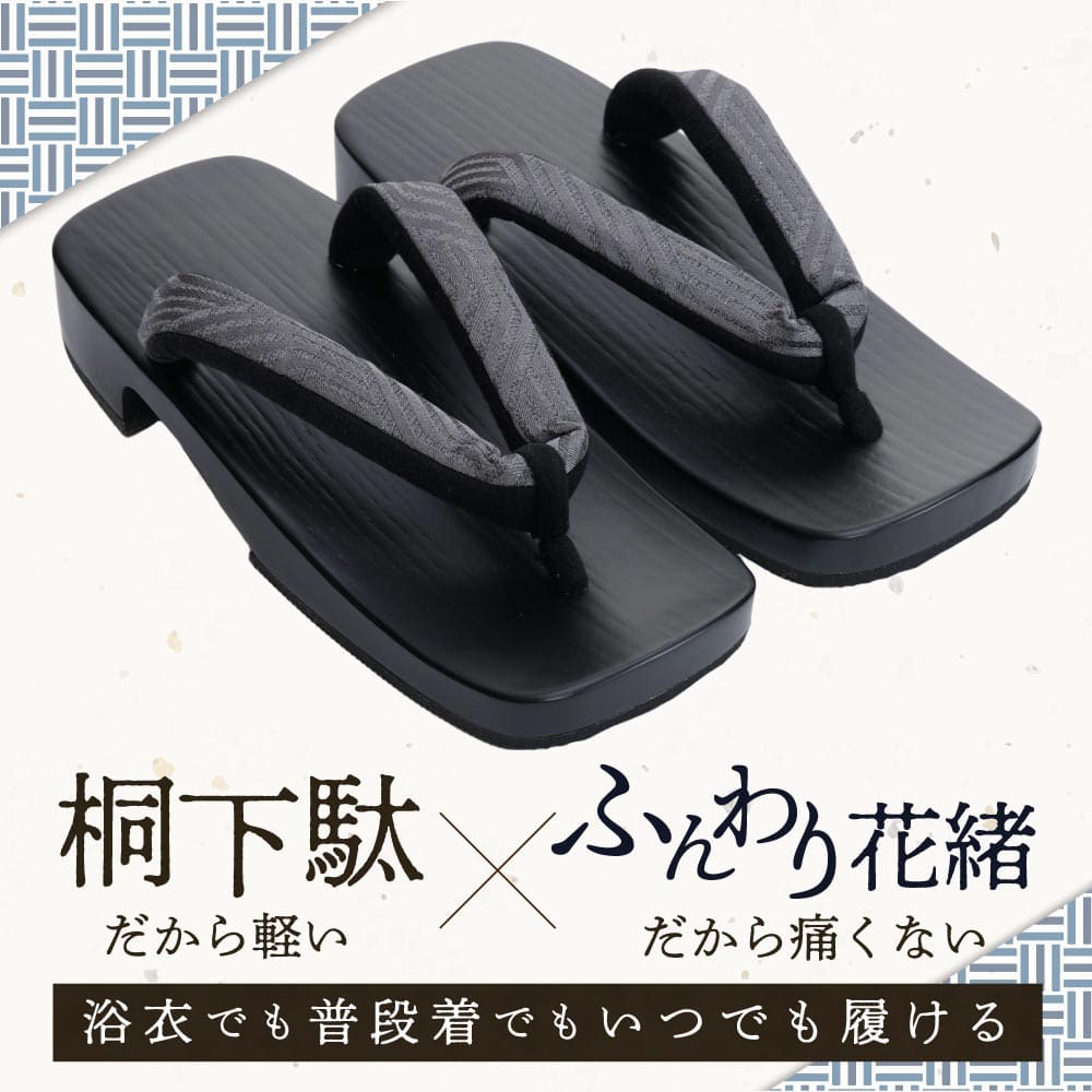 watomi 下駄 男性 メンズ 26.0cm 27.0cm 痛くない 履きやすい おしゃれ 下駄サンダル 日本製 桐男右近下駄 黒塗 柄花緒