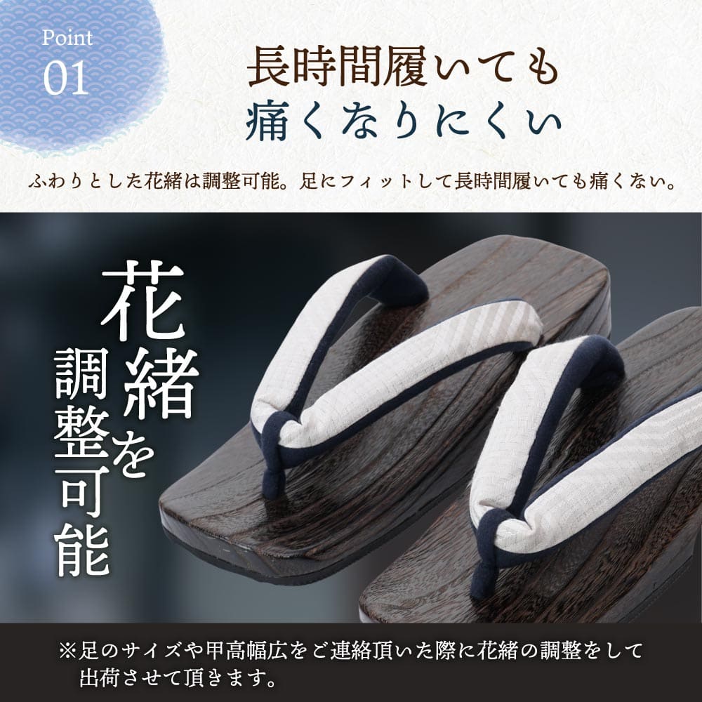 watomi 下駄 男性 メンズ 26.0cm 27.5cm 痛くない 履きやすい おしゃれ 下駄サンダル 日本製 桐男右近下駄 焼磨 柄花緒