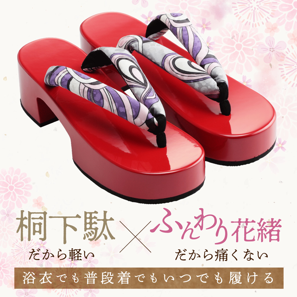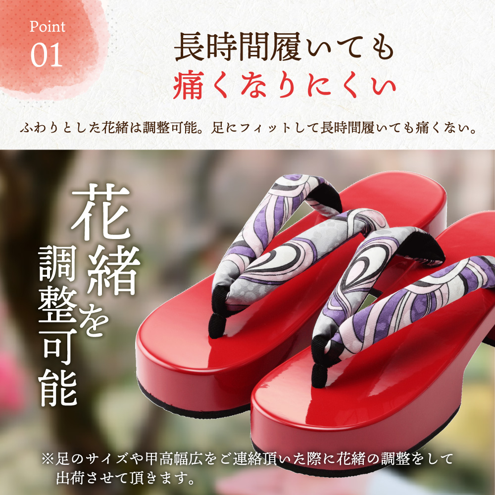 watomi 下駄 女性 レディース 足型下駄 足型 痛くない 履きやすい 下駄サンダル 日本製 24.5cm 桐女足型下駄 赤塗 柄 シルク 花緒