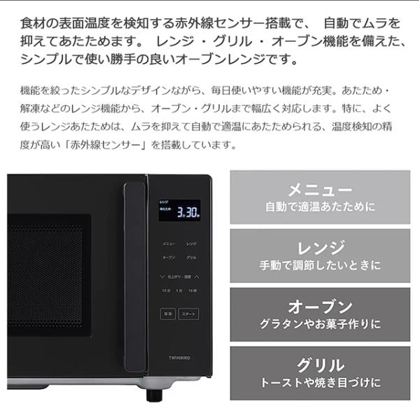 【赤外線センサー搭載モデル】フラットオーブンレンジ 16L オーブングリルモード 大きなお弁当の出し入れもしやい おしゃれ ツインバード正規品 保証付