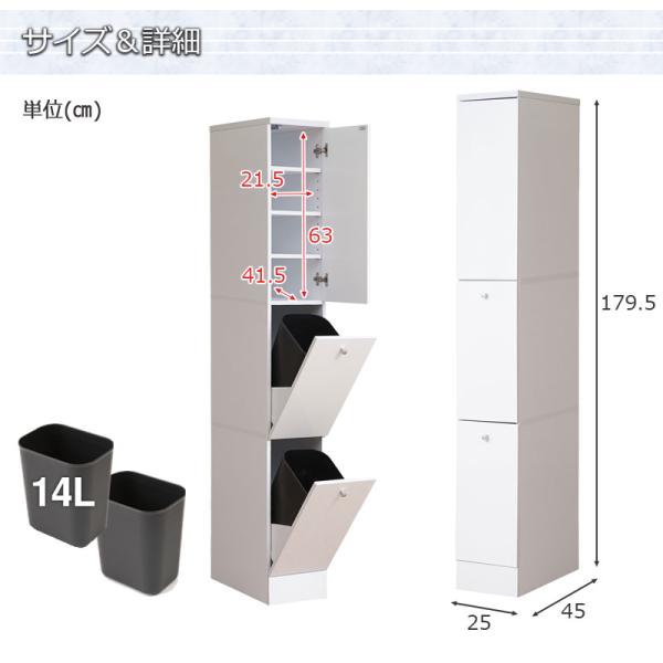 【FACE】 ランドリースリムタワー 2分別ペール付き ホワイト カゴ付き 幅25 奥行45 高さ179.5cm 背面化粧仕上げ ハイグロス ランドリーラック サニタリー収納