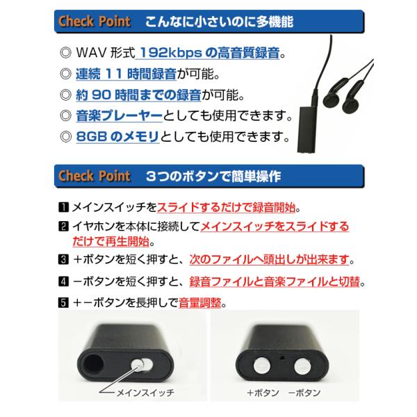 キヨラカ 世界最小クラス録音機 超小型ICレコーダー 小つぶ君 IC-U04特徴