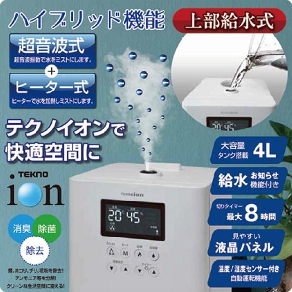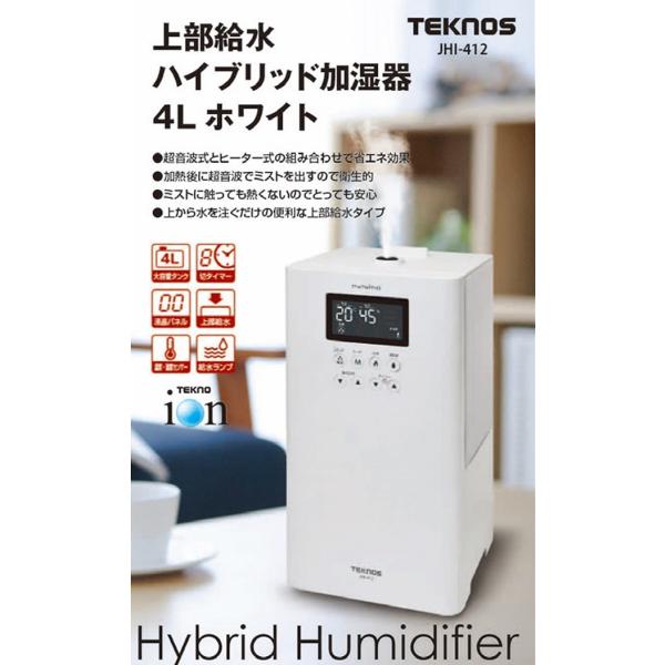 テクノス ハイブリッド加湿器 JHI-412 超音波&ヒーター らくらく上部給水 4L 大容量 正規品【加湿器 おしゃれ 大容量】