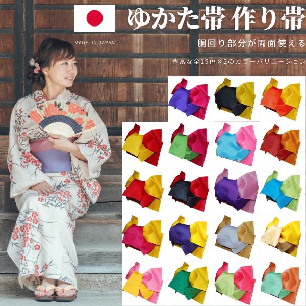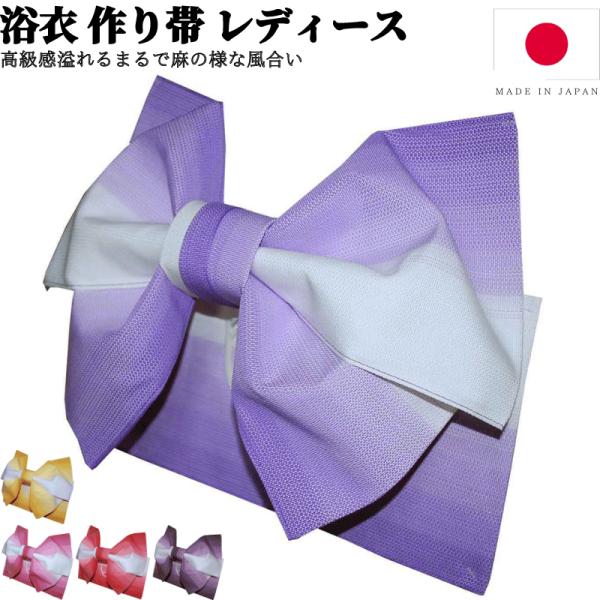 浴衣帯 作り帯 グラデーション 段ぼかし 浴衣 帯 帯だけ レディース ゆかた帯 簡単 結び帯 単品 ゆかた 大人 赤 青 黄 ピンク 紫 白 日本製 リボン 盆踊り