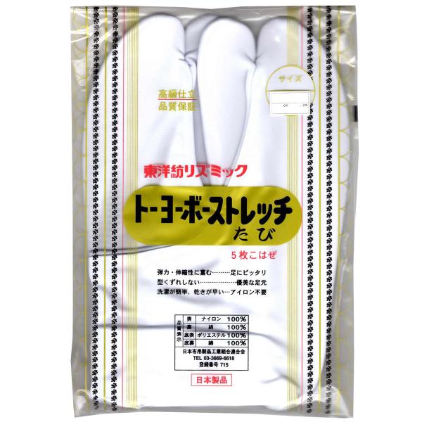 日本製 トーヨーボーストレッチたび 5枚コハゼ 白 足袋 綿使用 足にピッタリ アイロン不要