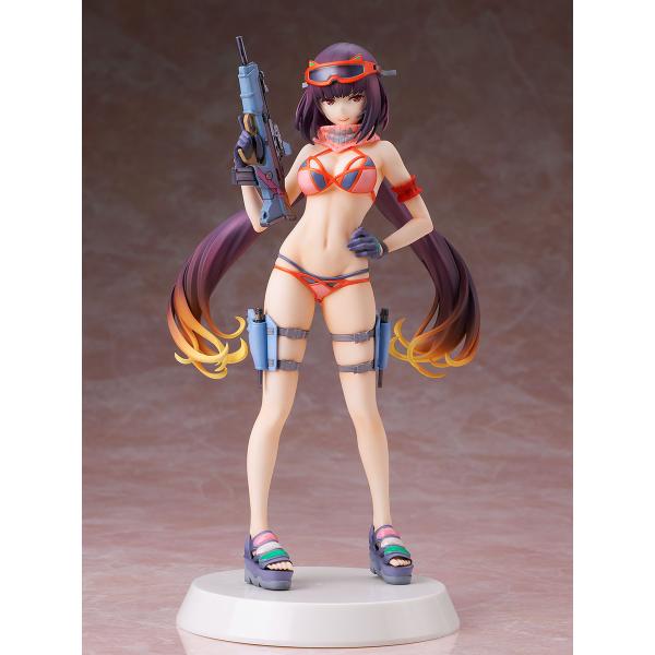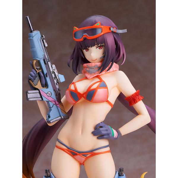 製品は頭部に加え、右腕に構えているSMG等が塗装・組立済み、その他の部分は未塗装・未組立で肌色や水着等、多色カラー成形のキット。