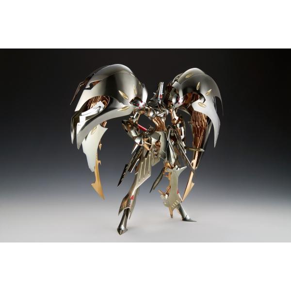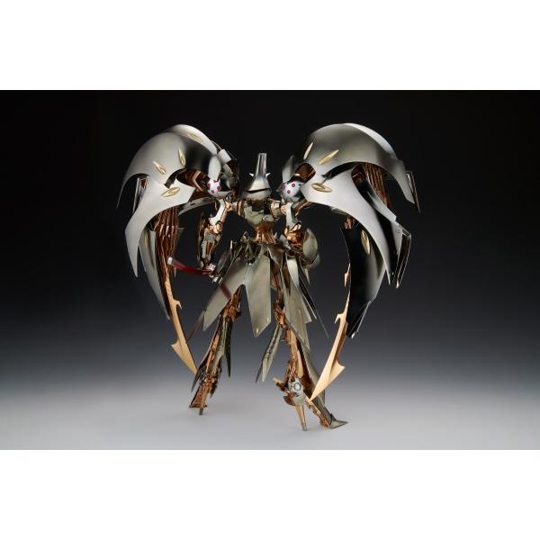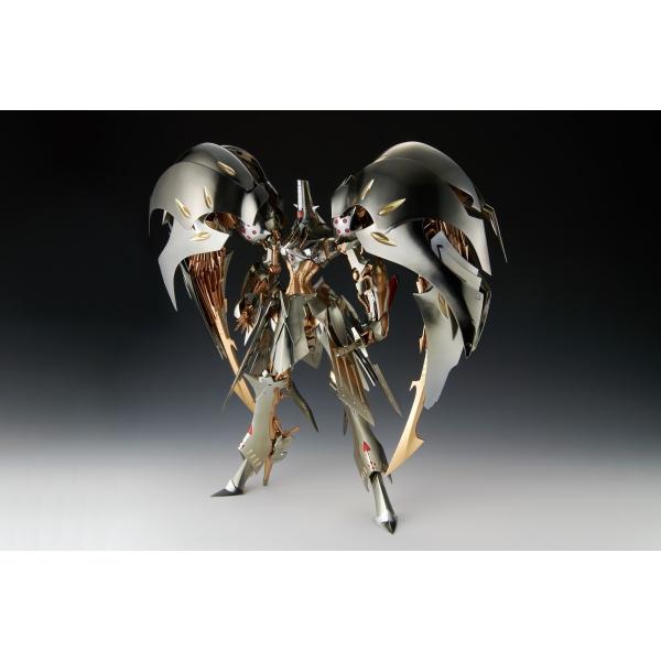 魔導大戦においてアルルの駆るエンゲージと交戦し印象的な活躍をしたオージェを、これまで数々のFSS造形を手掛けてきたSyujyu氏が1年以上もの時間をかけて取り組み、一切の妥協を排して完成させました。オージェ独特の流麗な外観の完全再現は勿論、バインダー内側や各種装甲の裏側まで細部ディテールも徹底的に造り込んでいます。真鍮インサート成形により歪みなく長大さを再現したビームサイズ(鎌)付属。